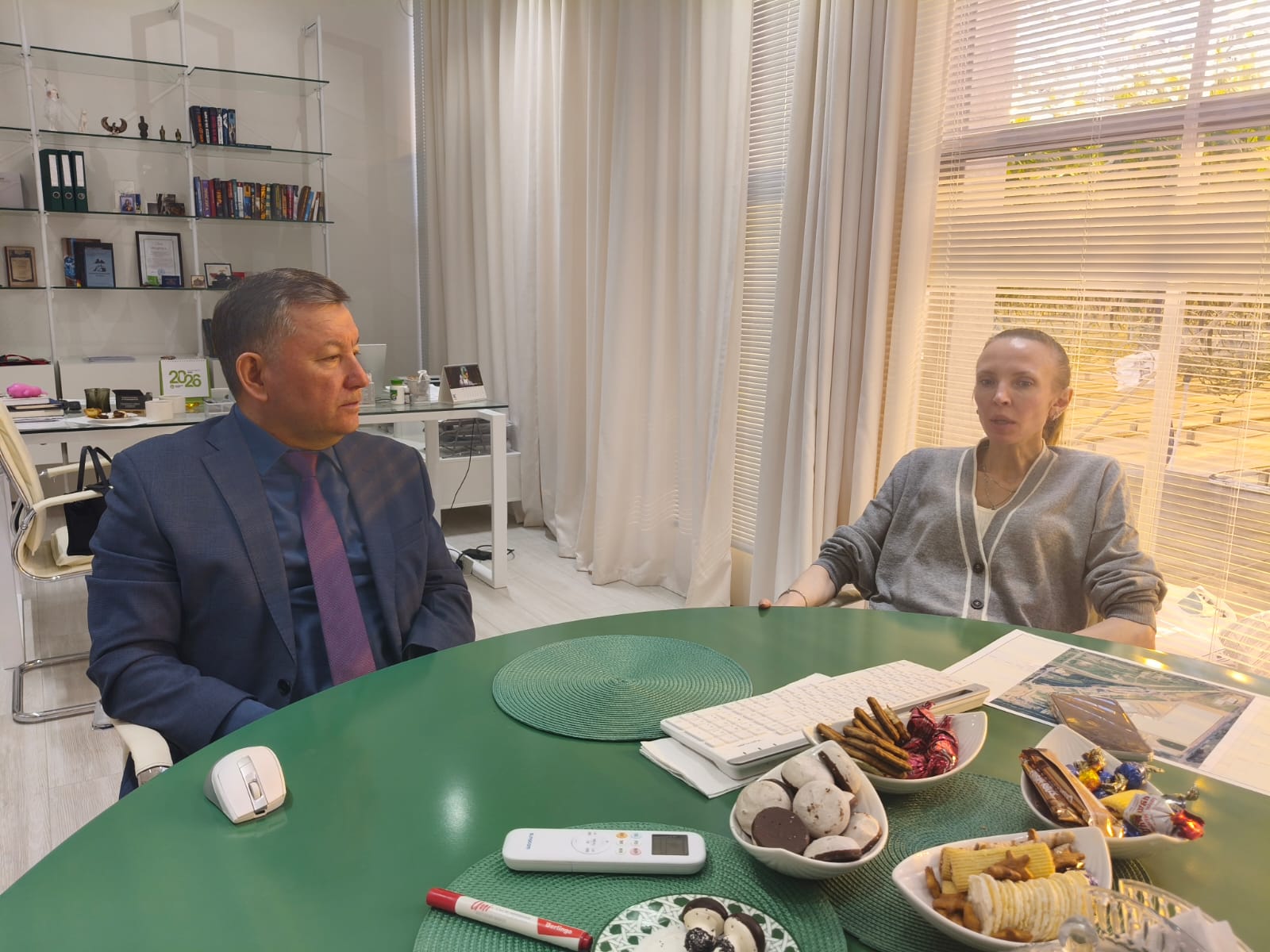 Фермамен танысу барысында кәсіпорын директоры Екатерина Александровна Асаенокпен «дөңгелек үстел» форматында кездесу өтті. Кездесу барысында ол өнім өндіру үдерісі, жұмыс орындарын құру жоспарлары және өндірісті кеңейту туралы айтып берді.