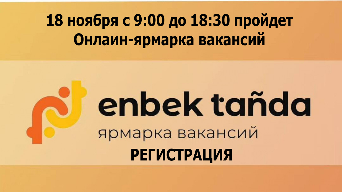 18.11.2025 с 09.00 до 18.30 пройдет Онлайн-ярмарка вакансий на платформе https://tanda.enbek.kz/ru