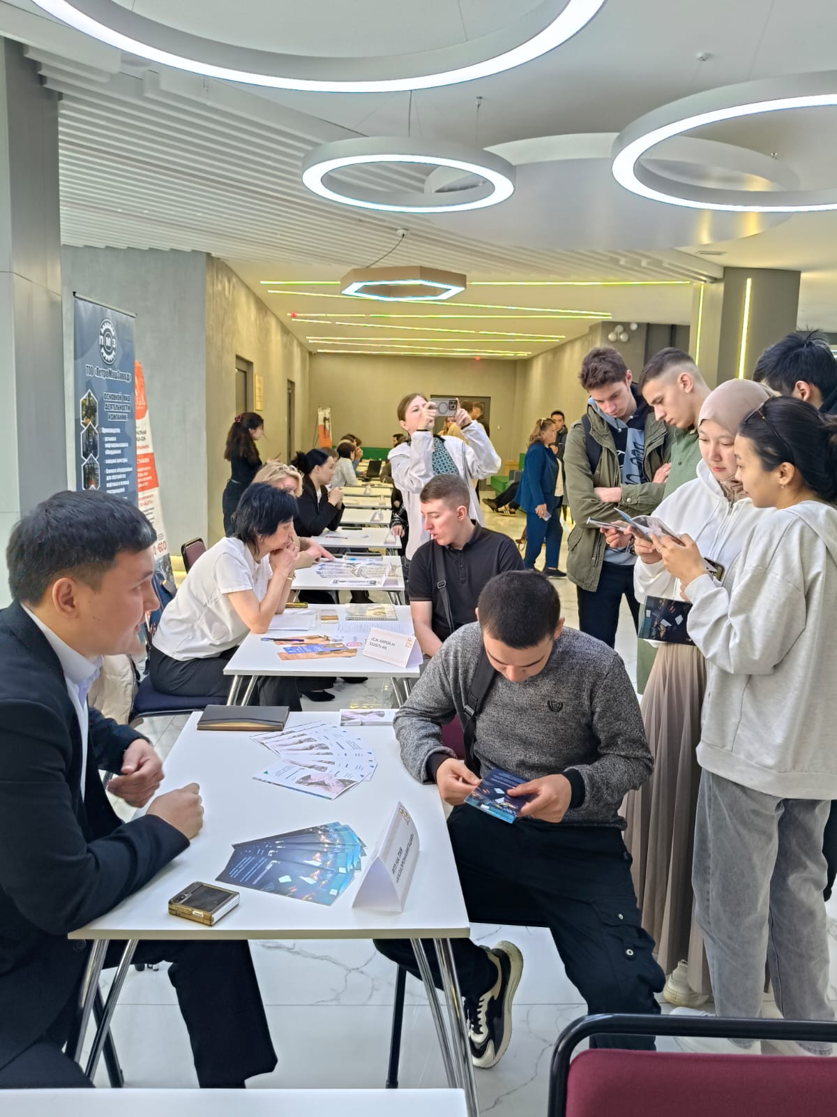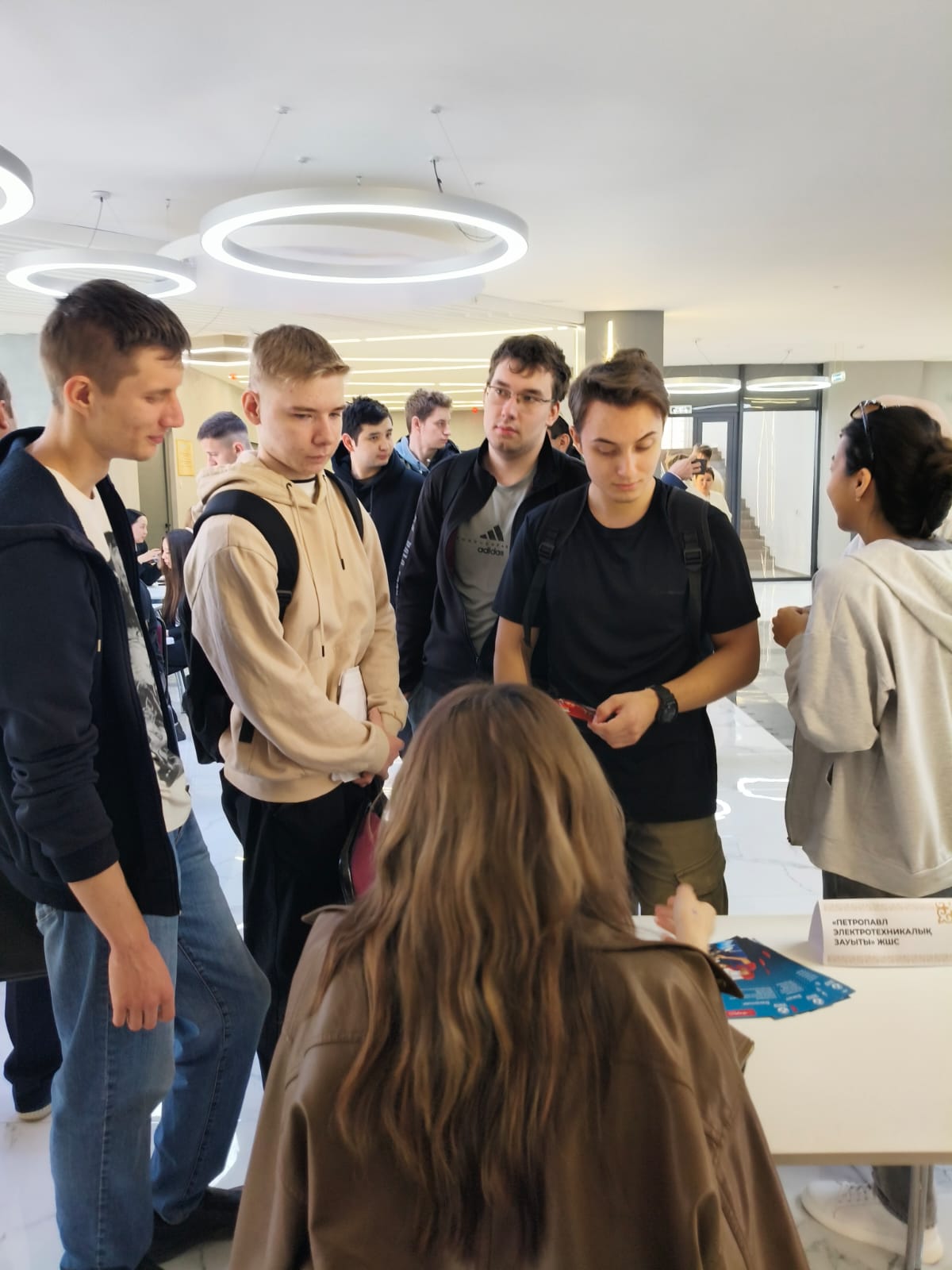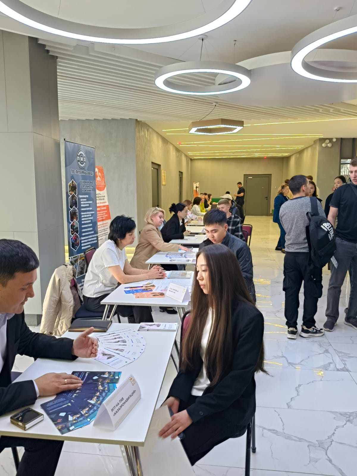 20 мая в стенах нового корпуса Kozybayev University прошла ярмарка вакансий для Факультета инженерии и цифровых технологий университета. Свои вакансии представили 17 предприятий города. В мероприятии приняло участие около 200 выпускников. Студенты смогли задать вопросы работодателю,и узнать условия трудоустройства.