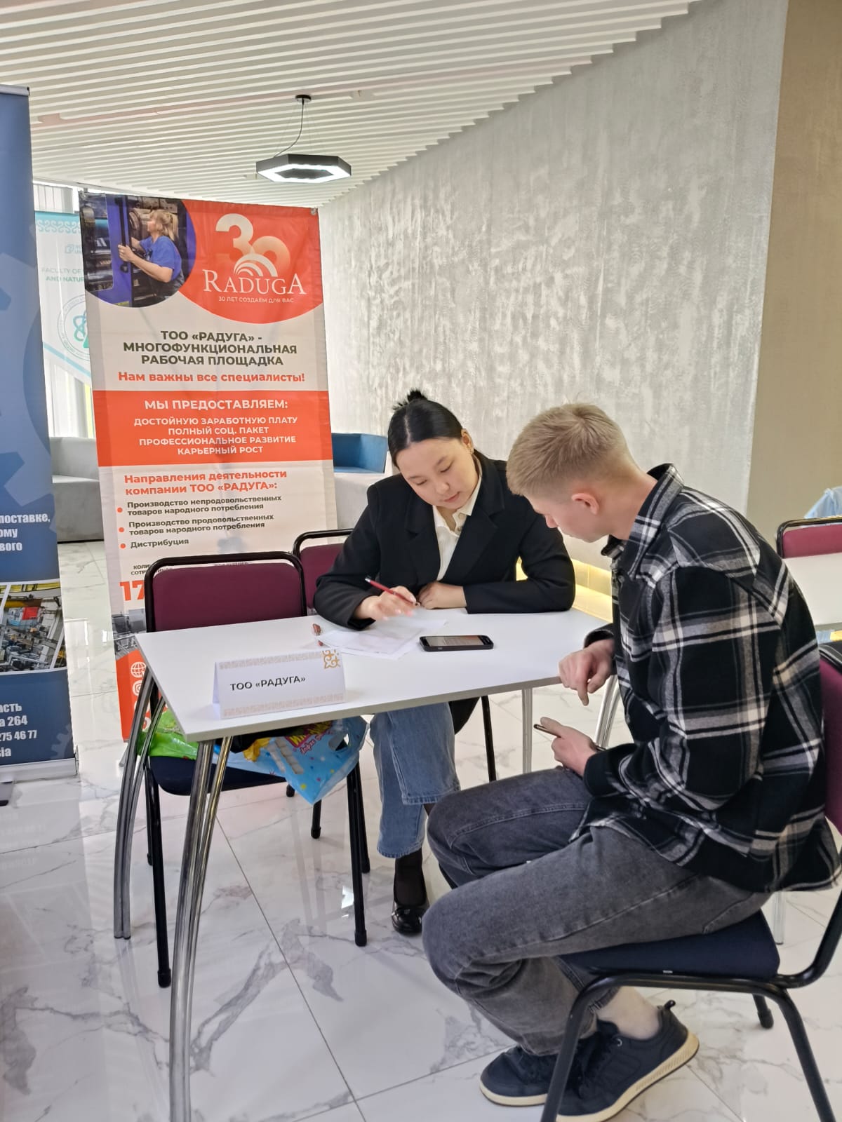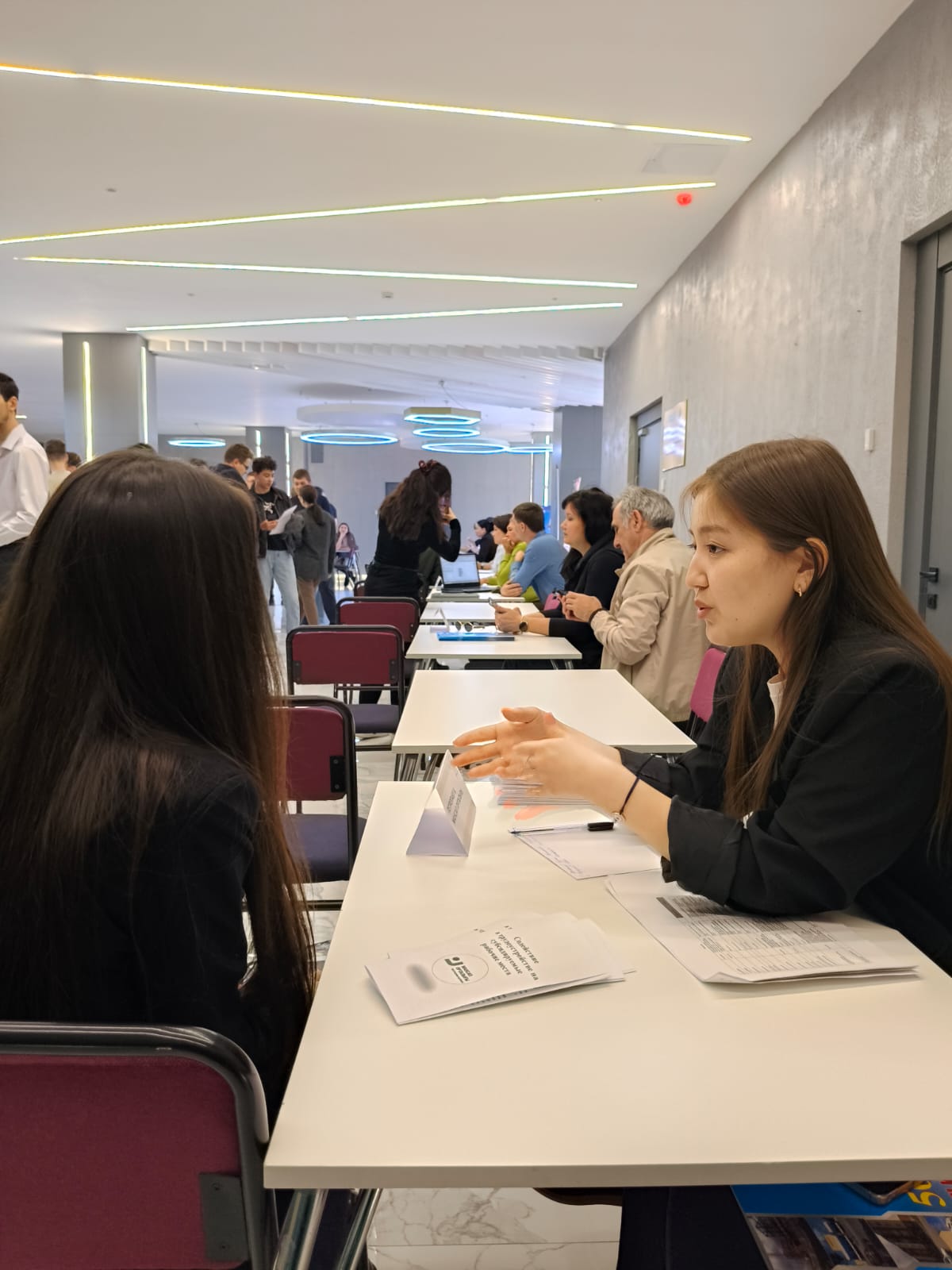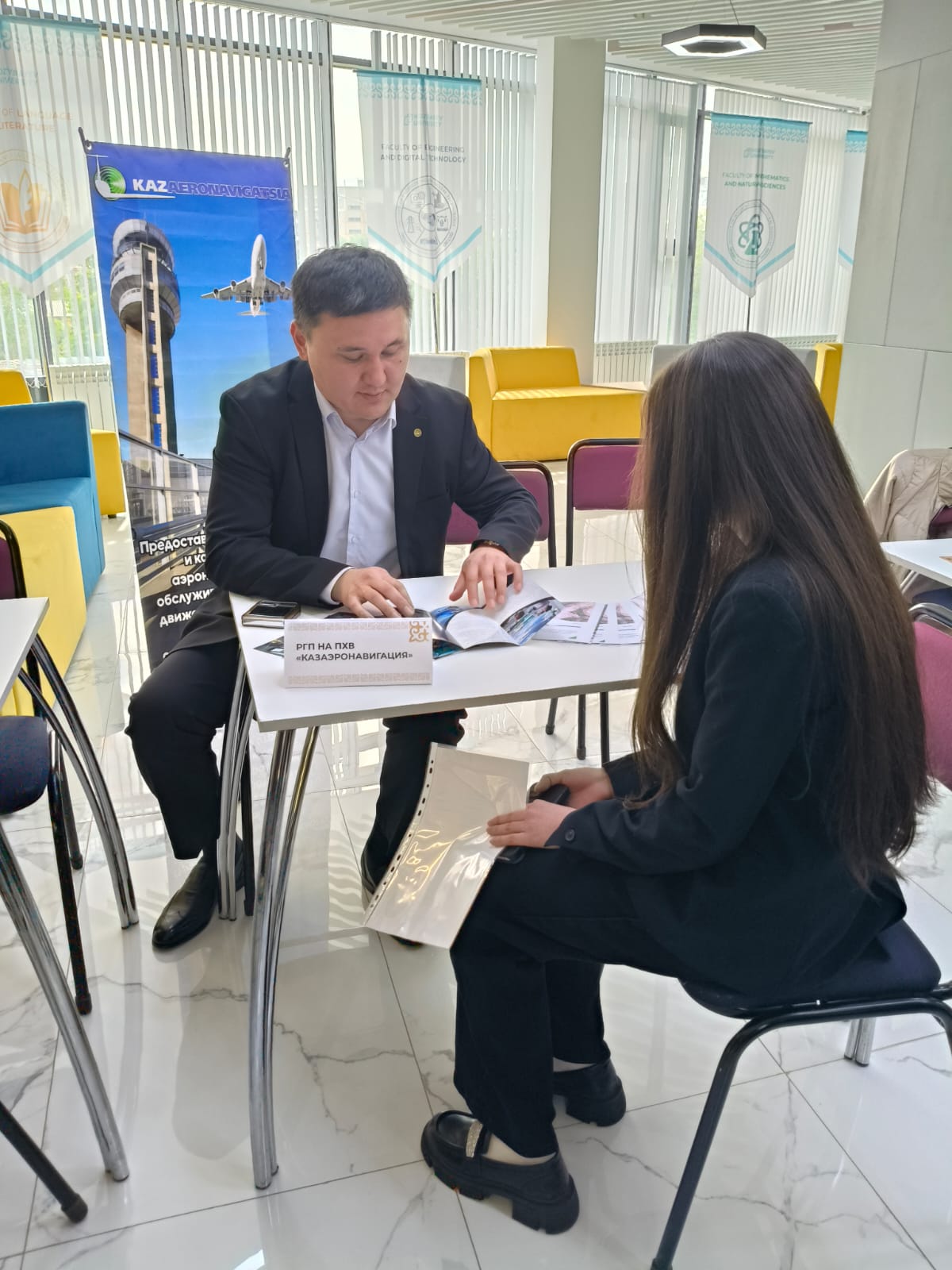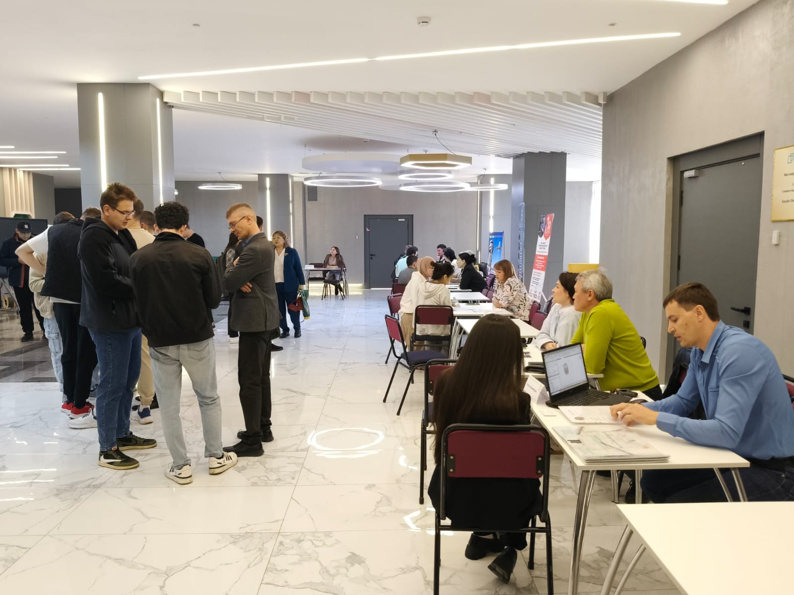 20 мая в стенах нового корпуса Kozybayev University прошла ярмарка вакансий для Факультета инженерии и цифровых технологий университета. Свои вакансии представили 17 предприятий города. В мероприятии приняло участие около 200 выпускников. Студенты смогли задать вопросы работодателю,и узнать условия трудоустройства.