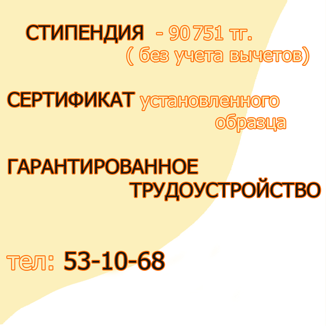 💸 В период обучения выплачивается стипендия — 90 751 тг (без вычетов).